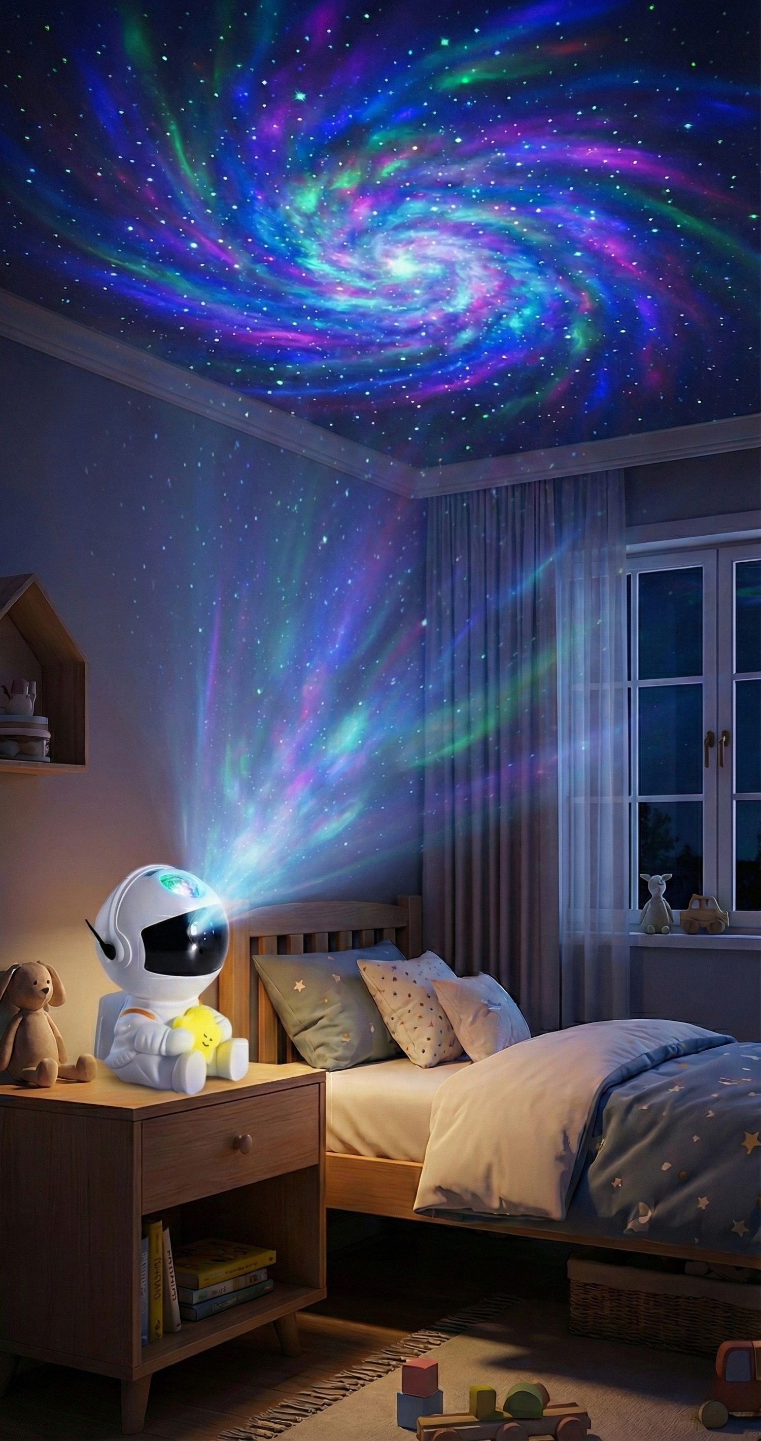 The Astronaut Galaxy Projector instantly fills the room with a magical starry sky. Just plug it in and let galaxies shine on the ceiling no batteries, no setup.